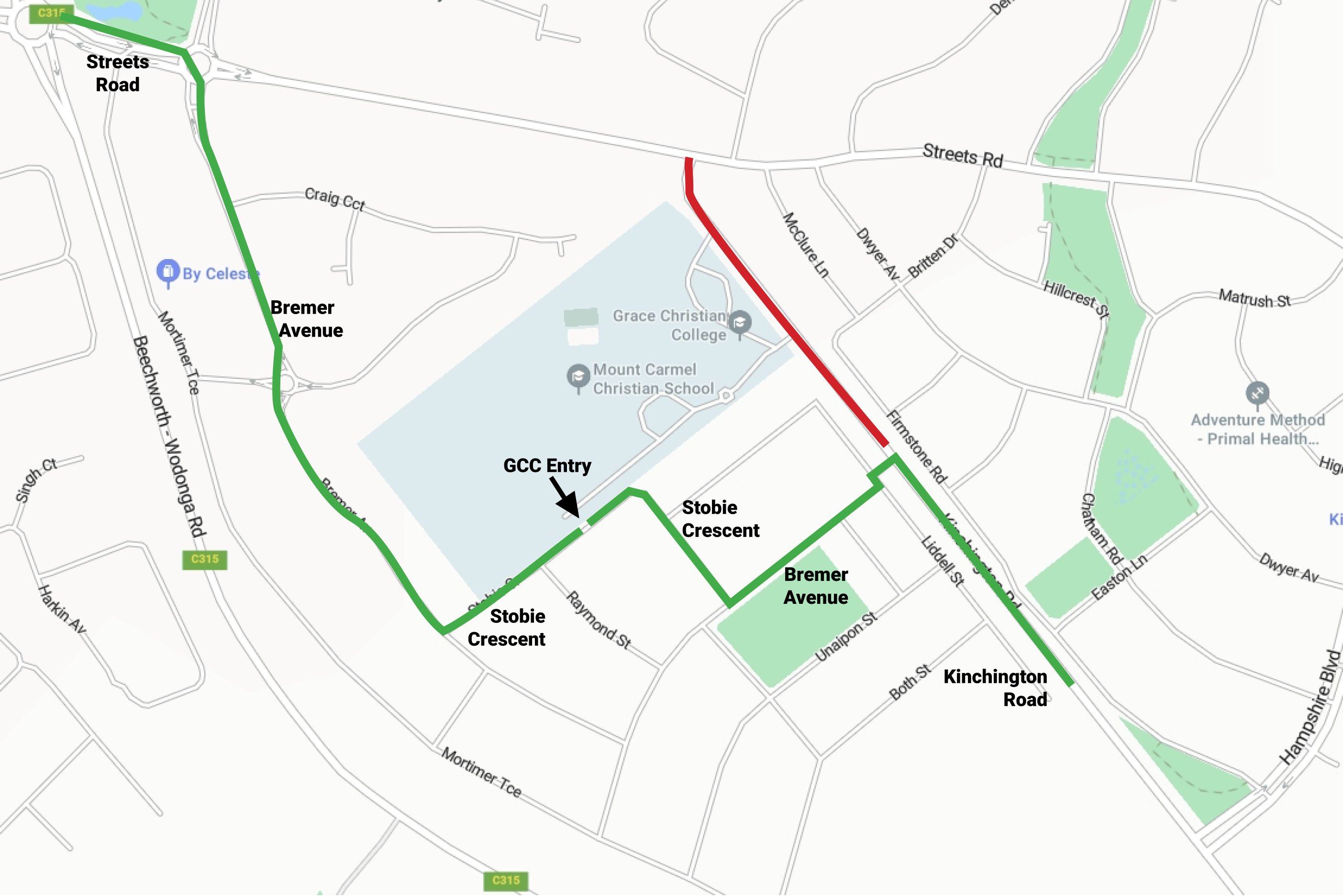 Access to Grace Christian College has changed due to roadwork on Kinchington Road.